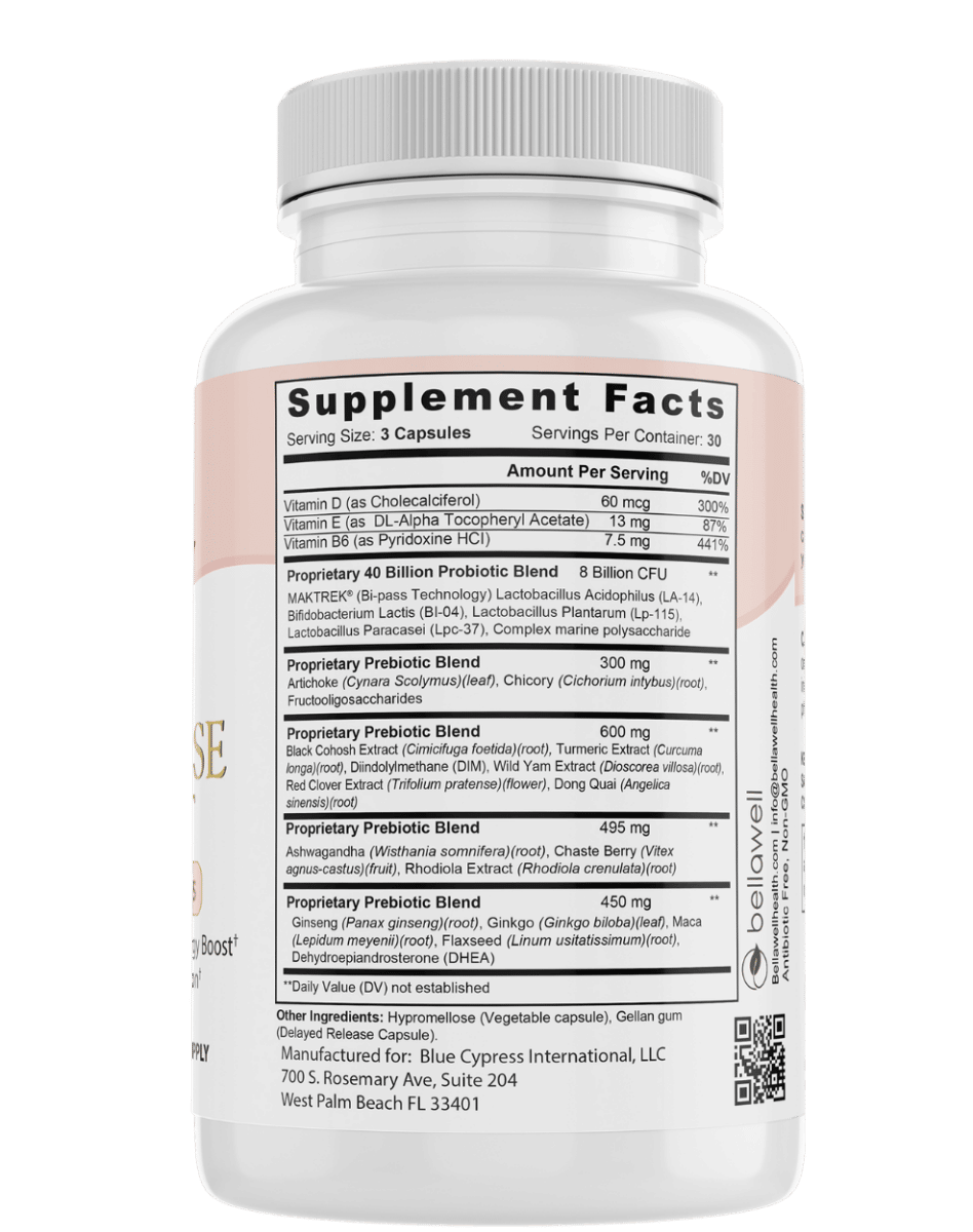 Menopause Support is a carefully crafted supplement designed for women navigating the natural stages of menopause. Its comprehensive formulation includes a blend of vitamins, probiotics, prebiotics, and herbal extracts, providing an all-encompassing approach to overall well-being.